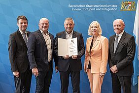 Staatssekretär Kirchner würdigte die Verdienste von Egon Sturm um die kommunale Selbstverwaltung in einer Laudatio. Egon Sturm wirkt seit fast drei Jahrzehnten als Mitglied des Stadtrats Bischofsheim in der Rhön und des Kreistags Rhön-Grabfeld für die positive Entwicklung der unterfränkischen Region. Er hat sich parteiübergreifend einen Namen als versierter Kommunalpolitiker gemacht, der sich stets engagiert und sachlich in die Gremienarbeit von Stadt und Landkreis einbringt. Seit 1996 dem Stadtrat Bischofsheim in der Rhön zugehörig nimmt er sich dabei der unterschiedlichsten Themenfelder an. Als zweiter Bürgermeister von 2008 bis 2014 und 2016 bis 2020 zeichnete er sich insbesondere durch seine immer loyale, pragmatische und bürgerfreundliche Amtsführung aus. Besonderen Fokus legt er auf die Schaffung attraktiver Rahmenbedingungen für alle Generationen, die Unterstützung der Ortsteilfeuerwehren, der Förderung des Vereinslebens und dem Erhalt der Rhöner Natur und Kultur. Geboren in der ehemals selbständigen Gemeinde Wegfurt, die 1972 im Zuge der Gebietsreform in die Stadt Bischofsheim in der Rhön eingemeindet wurde, widmet er sich mit viel Herzblut im Interesse des Bischofsheimer Gemeindeteils mit dem Ziel, die Lebensqualität vor Ort kontinuierlich zu steigern. Eng mit seinem Namen verbunden ist sein beharrlicher Einsatz für den Bau der Umgehungsstraße, deren Realisierung auch seinem nachdrücklichen Zutun zu verdanken ist. So engagierte er sich etwa in der Planungsphase nachdrücklich bei den teils schwierigen Grundstücksverhandlungen als notwendige Voraussetzung für die Realisierung dieses für die Wegfurter Bürgerinnen und Bürger so wichtigen Projekts.